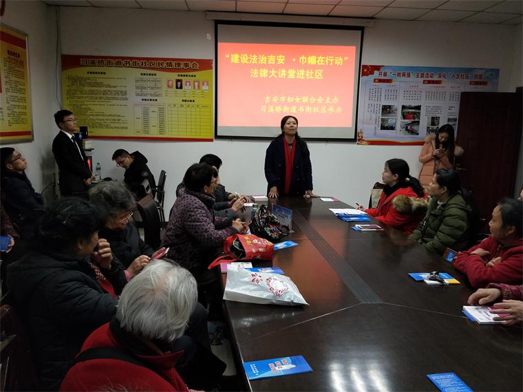 3月7日下午3点,江西吉泰律师事务所律师郑强强作为吉安市妇联的法律顾问,在书街社区应邀参加了由吉安市妇联主办、习溪桥街道书街社区承办的“建设法治吉安·巾帼在行动”法律知识大讲堂活动。