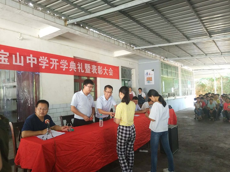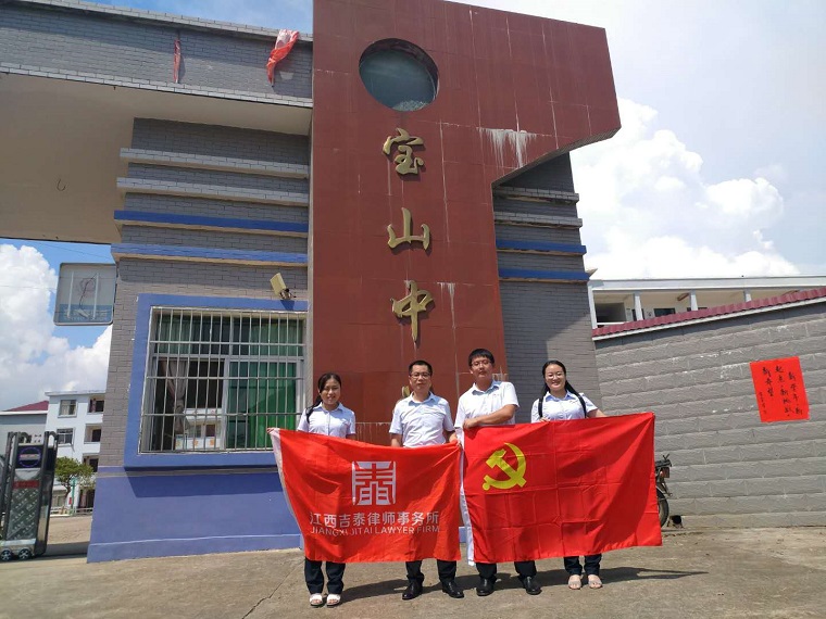国要振兴,教育为本,时值吉安市万安县宝山中学“吉泰基金”成立三年之际, 2018年9月21日,江西吉泰律师事务所执行主任李月明律师、党支部负责人吴福星律师、律师代表梁鸿燕、行政主任王超一行携带“吉泰基金”前往宝山中学参加了宝山中学新学期开学表彰大会。