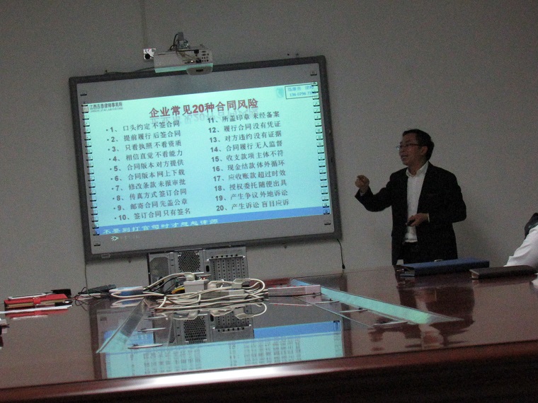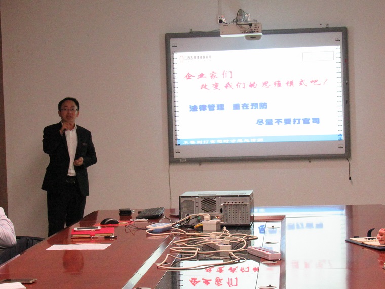 江西吉泰律师事务所主任练继勇律师为柏兆科技有限公司讲授“合同法律风险管理”课程